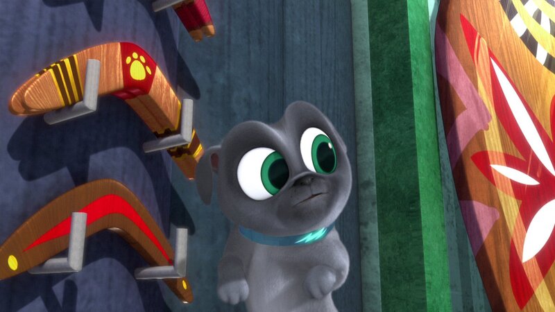 Nachdem Rolly Bobs Bumerang zerkaut hat, reisen die Welpen nach Australien, um einen neuen zu finden.