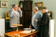 • Edwin (Tilo Prückner, 2.v.r.) und Günter (Wolfgang Winkler, r.) sollen einen Antiquitätenhändler überfallen haben. Vicky (Katja Danowski, l.) und Hui (Aaron Le, 2.v.l.) untersuchen das Überwachungsvideo auf Manipulationen.