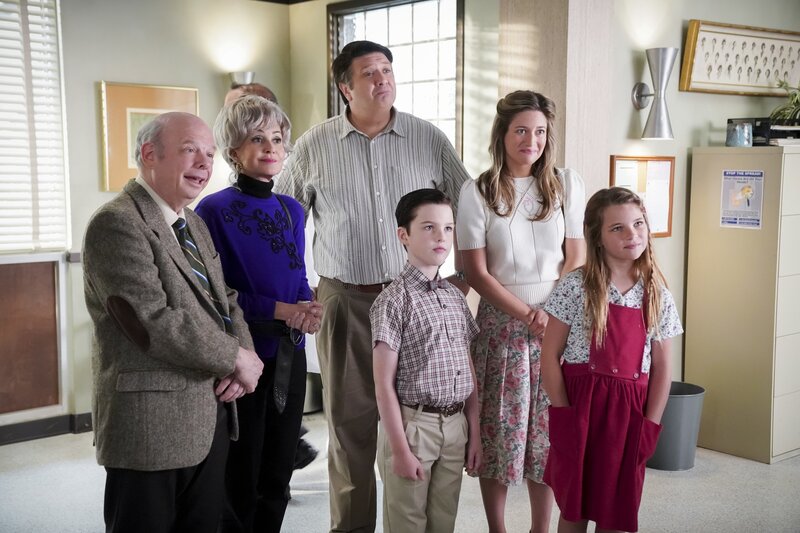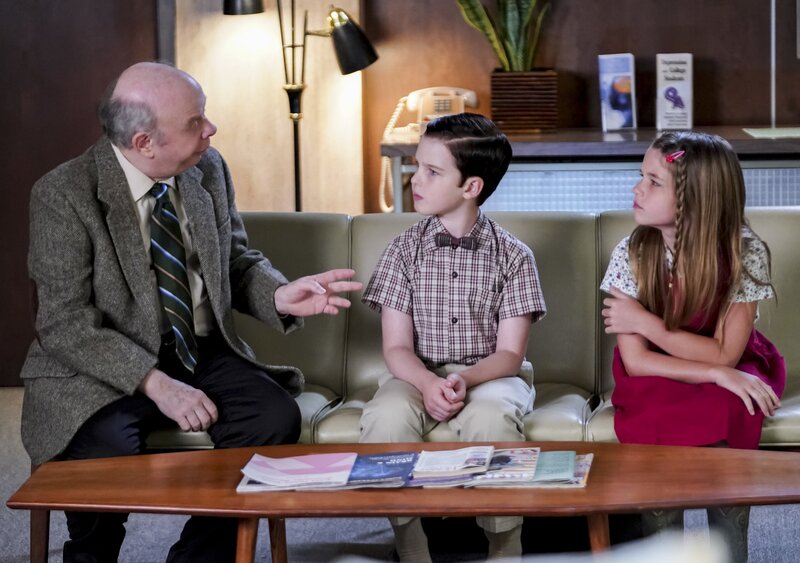 L-R: Dr. Sturgis (Wallace Shawn); Sheldon (Iain Armitage); Missy (Raegan Revord)
