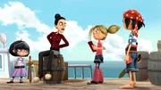 Matilda feuert unbeabsichtigt eine Kanone auf Frau Bibers Garten ab. Dummerweise fällt dabei deren Lieblingsgartenzwerg um. Frau Biber regt sich fürchterlich auf, wie üblich. Aber als die Kinder dieses Mal versuchen sie zu beruhigen, hypnotisieren sie Frau Biber aus Versehen. Sie wird in Hypnose zum wildesten Piraten der Stadt. Das ist erst ganz witzig für die Freunde - bis Frau Biber zur Kidnapperin wird, und sich Goldstück ihr auch noch begeistert anschließt. Die Kinder suchen verzweifelt nach einer Methode, die Hypnose zu beenden…