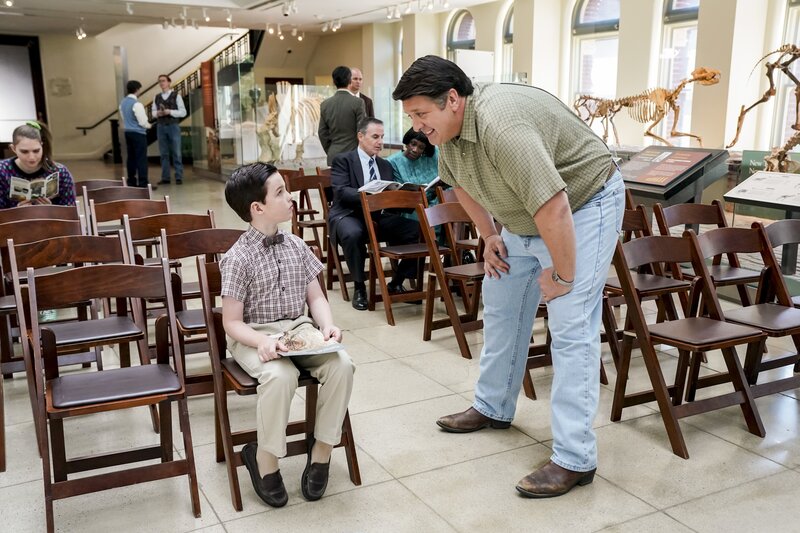 Sheldon möchte eine Vorlesung über Radiocarbondatierung im Naturwissenschaftlichen Museum besuchen. Dort triffft er überraschend auf Paige. Sie überredet ihn, die Vorlesung zu verlassen und das Museum auf eigene Faust zu erkunden. Unterdessen trifft George auf Paiges Mutter, die ihm ihr Leid über ihre zerrüttete Ehe beklagt. Zu Hause veranstaltet Meemaw einen Flohmarkt mit den Sachen ihres verstorbenen Ehemanns, was Mary sehr zu Herzen geht.