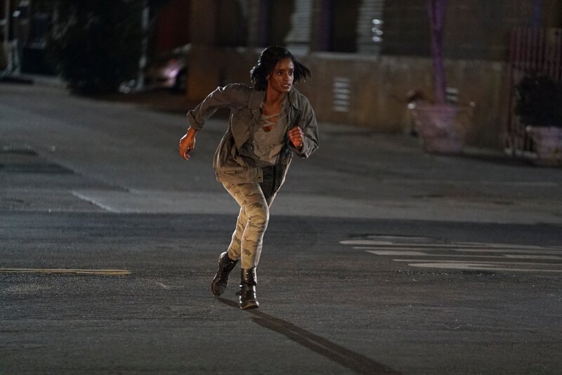 • Kai De Vera (Skye P. Marshall) flüchtet vor der Polizei, nachdem sie ein Gebäude überfallen hat.