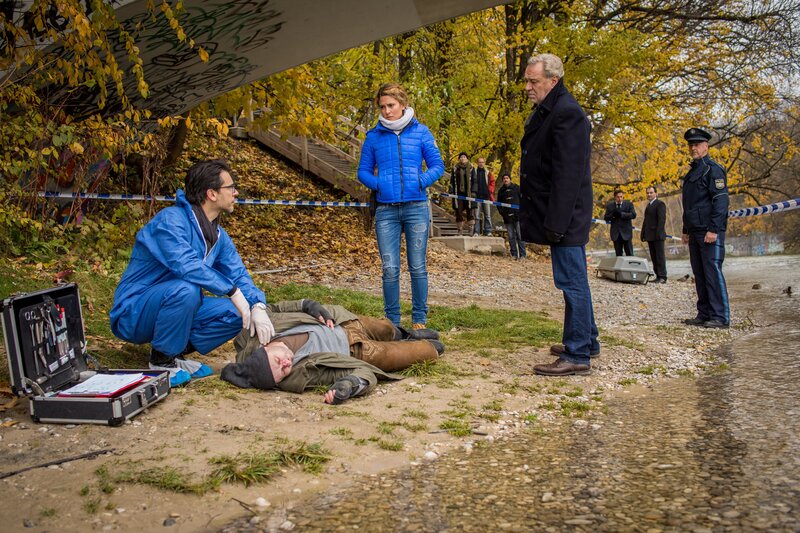 • Die SOKOs am Tatort: Arthur Bauer (Gerd Silberbauer, r.), Toni Bischoff (Amanda da Gloria, m.) und Dr. Weissenböck (Florian Odendahl, l.).