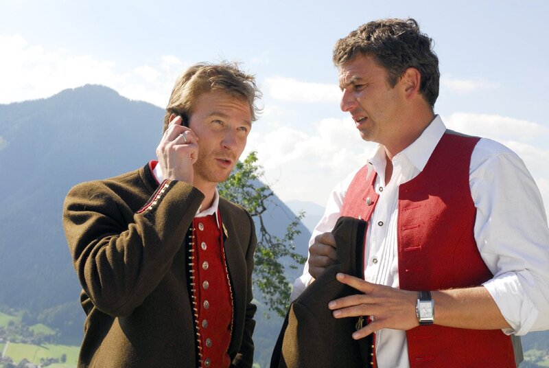 Während Martin (Hans Sigl, re.) sich nicht erklären kann, wie Renés (Oliver Wnuk) Persönlichkeitswandel so plötzlich zustande gekommen ist, ist sich René sicher, dass es Martins Tabletten gegen Lampenfieber waren. Allerdings hat es sich dabei um ein Placebo gehandelt.