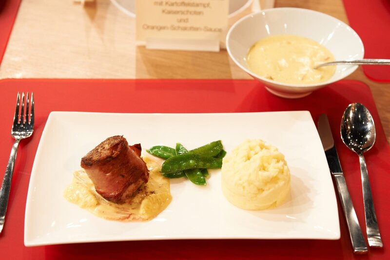 "Adventliches Leibgericht": Iberico-Filet im Speckmantel mit Kartoffelstampf, Kaiserschoten und Orangen-Schalotten-Sauce von Elisabeth NoelleBild: © ZDF und Gunnar Nicolaus