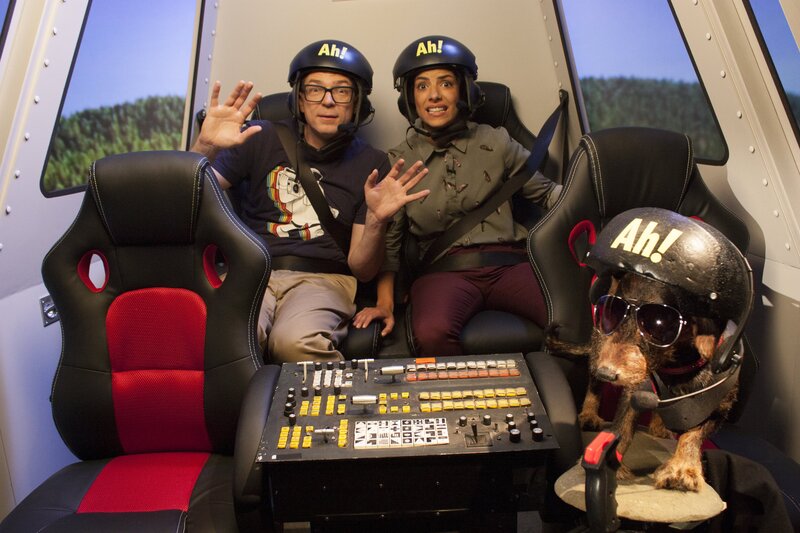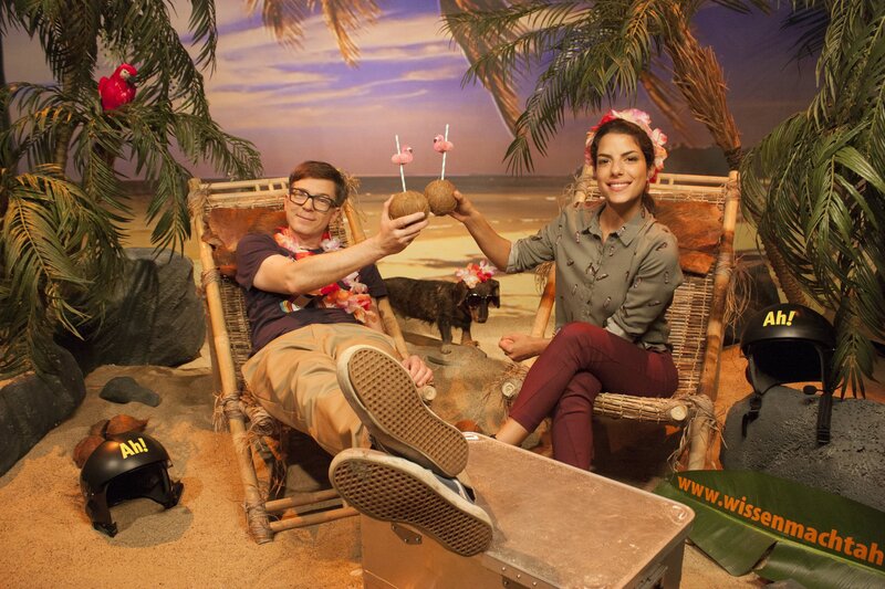 Clarissa und Ralph: Fliegen und Liegen: Wissen ist keine Schande, finden Clarissa und Ralph, und sorgen wie in jeder Sendung für fünffachen Wissenszuwachs: fünf Fragen, fünf Antworten, fünf Ah(a)-Erlebnisse. Wissen macht Ah! im Internet: www.wissen-macht-ah.de Clarissa und Ralph haben das "Wissen macht Ah!"-Studio hinter sich gelassen und stattdessen in einem Hubschrauber Platz genommen. Pardon - in einem "Hund"schrauber, denn der Pilot ist niemand anderes als Lumpi. Während er die beiden Moderatoren an einen einsamen Palmenstrand fliegt, finden Ralph und Clarissa Zeit, einen eigenen Hubschrauber zu bauen und trotz ihres ungewöhnlichen Aufenthaltsortes folgende Frage zu beantworten: Warum kann ein Hubschrauber in der Luft stehen?