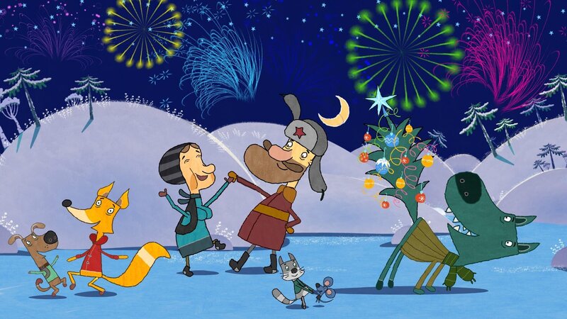 Ein Fischer will zum Eisangeln und sieht unterwegs einen Fuchs, der sich tot stellt. Der Fischer hat Mitleid mit ihm und nimmt ihn mit. Als er schläft beim Angeln einschläft, will ein Wolf ihm die Fische stehlen. Der Fuchs greift ein und erklärt dem Wolf, er könne selbst mit seiner Lunte im Eisloch fischen. Doch der Wolfschwanz gefriert sofort und das Tier kann nur mit Mühe gerettet werden.