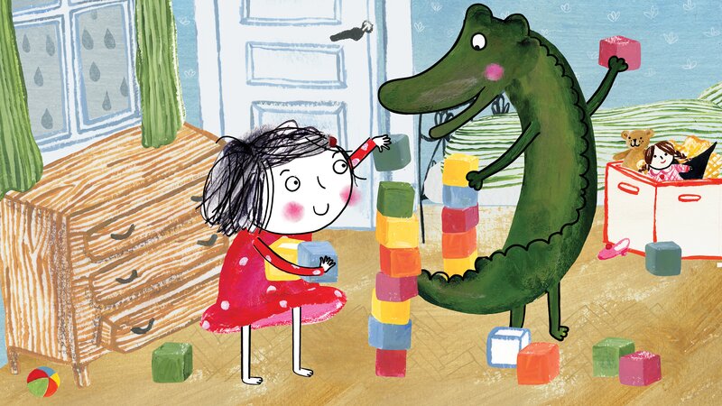 Rita und das Krokodil: Ein Regentag: Es regnet, Rita und das Krokodil spielen drinnen. Rita findet ihre alten Holzklötze wieder und jeder baut seinen eigenen Turm.