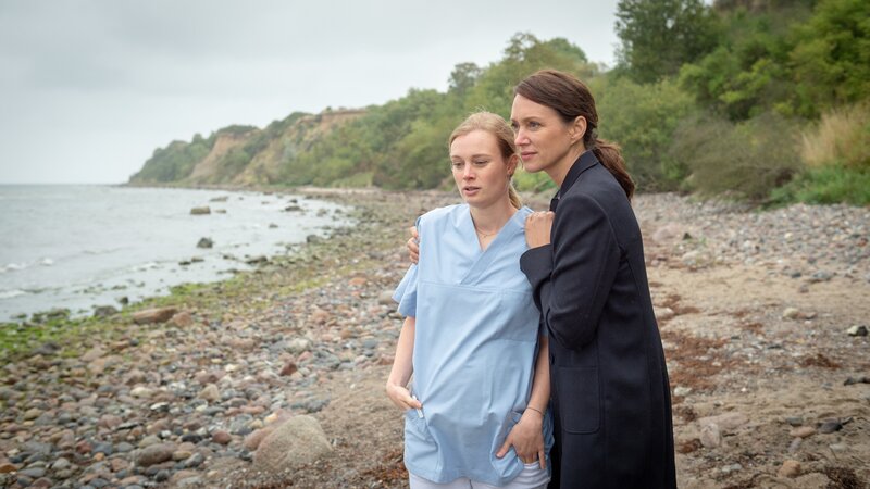 • Karoline Joost (Nike Fuhrmann, r.) tröstet die Freundin des Opfers. Mira Hoffmann (Kira Zurhausen, l.) ist schwer getroffen, schließlich erwartet sie ein Kind vom Toten. Trotz Trauer liefert sie Kommissarin Joost eine heiße Spur.