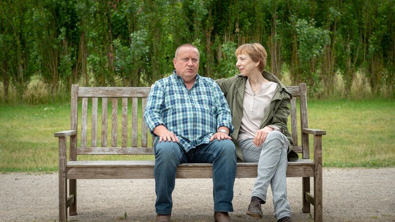 Lars Pöhlmann (Dominic Boeer, l.) mahnt seinen Chef, denn trotz verordnetem Kuraufenthalt kann Reuter (Udo Kroschwald, r.) das Arbeiten nicht lassen. Er hat ermittelt, dass der Tote im Moorbad einen Kurschatten gehabt hat. Dabei ist der Mann verheiratet. Seine Frau hat ihn bisher in der Klinik nicht besucht. Reuter hängt sich inkognito in den Fall. Kann er den Fall von der Klinik aus lösen?
