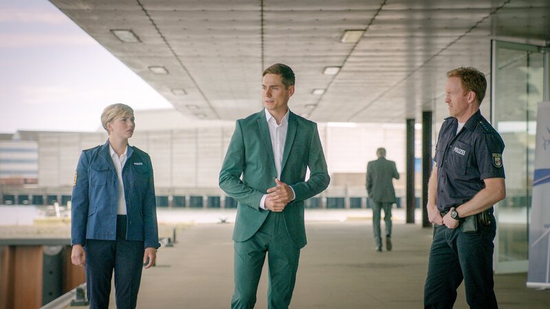 Stine (Sidsel Hindhede, l.) und Timmermann (Mathias Junge, r.) befragen den Mitarbeiter des Toten – Bert Hohlbein (Timothy Boldt, M.). Zwar versucht er es zu verbergen, aber in dem jungen Mann hat sich viel Wut angestaut. Das Opfer Steffen Reinhard hat offenbar fleißig riesige Summen Geld beiseite geschafft und die gemeinsame Firma in den Ruin getrieben. Hat Bert Hohlbein seinem Ärger Luft gemacht und seinen Chef vergiftet?