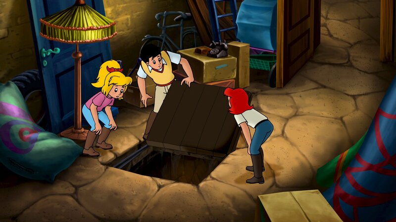 Bibi und Tina reiten um die Wette zum Schloss Falkenstein. Dort ist Baron von Ochsen mit einem alten Schuldschein aufgetaucht, der ihn als rechtmäßigen Besitzer des gräflichen Gestüts ausweist. Das Papier wurde einst vom Schlossgründer Leo von Falkenstein ausgestellt. Graf Falko von Falkenstein glaubt nicht an eine Schuld seiner Ahnen und weist den Baron vom Schlossgelände. Der Baron droht wiederzukommen, um das Gestüt in Besitz zu nehmen. Alexander von Falkenstein ist fassungslos: Er will seinen Rappen Maharadscha nicht verlieren!