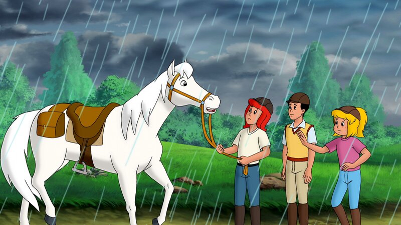 Ein heftiges Gewitter zwingt Bibi, Tina und Alex dazu, ihr gemütliches Picknick vorzeitig zu beenden. Schnell reiten sie zurück in Richtung Martinshof. Doch kurz bevor sie ihn erreichen, schlägt ein Blitz in einen ausladenden Ast ein, unter dem Bibi mit Sabrina durchreiten muss. Sabrina scheut, und als ihr der brennende Ast vor die Füße fällt, beginnt sie zu steigen Bibi rutscht aus dem Sattel. Zum Glück passiert ihr nichts, aber Sabrina bekommt einen riesigen Schreck. Sie lässt sich von Bibi nicht mehr anfassen.