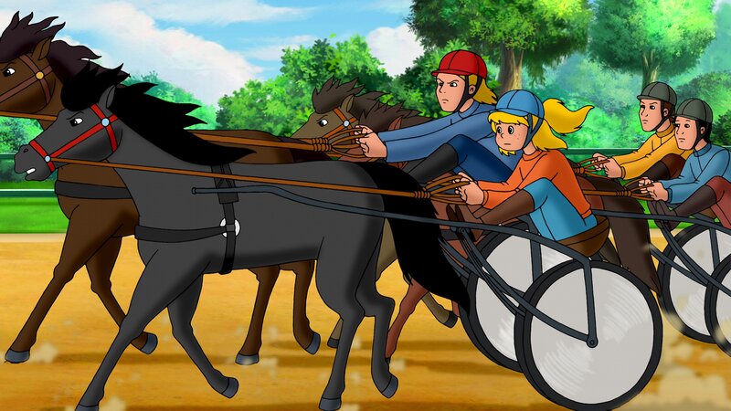 Die Lindenhofbäuerin musste ihren Rappen Blacky verkaufen, um dringende Arbeiten an ihrem Hof zu bezahlen. Friedhelm von Strauch, der neue Eigentümer, will Blacky als ersten Preis in einem Trabrennen einsetzen. Bibi, Tina und Alexander, die schon für das Trabrennen trainieren, beschließen, der Lindenhofbäuerin zu helfen. Sie wollen unbedingt das Rennen gewinnen, damit Blacky wieder auf den Lindenhof kommt. Doch Sigurd von Strauch hat es auch auf Blacky abgesehen. Um sein Ziel zu erreichen, scheut er auch vor nichts zurück.