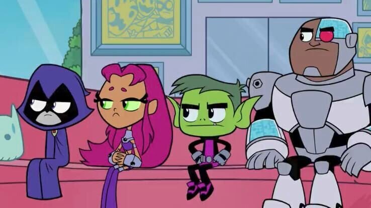 v.li.: Beast Boy, Starfire, Raven, Cyborg, Robin