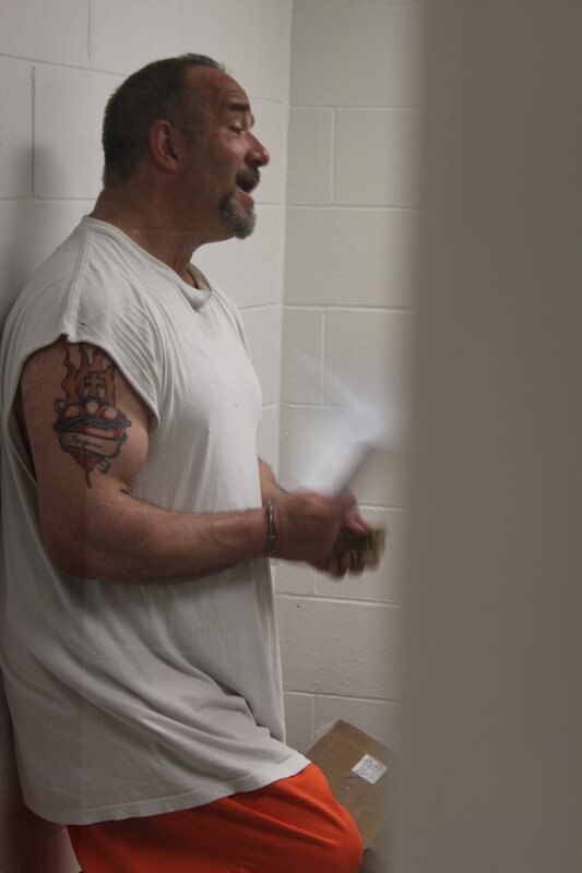 Die Gefängniswärter sammeln sich im Zellenblock 1-A.