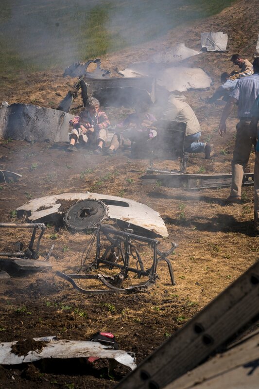 Brantford, Ontario - Debris is scattered around the crash site of KLM Cityhopper Flight 433 near the runway at Amsterdam's Schiphol Airport. (Cineflix 2018/Pana Pantazidis)