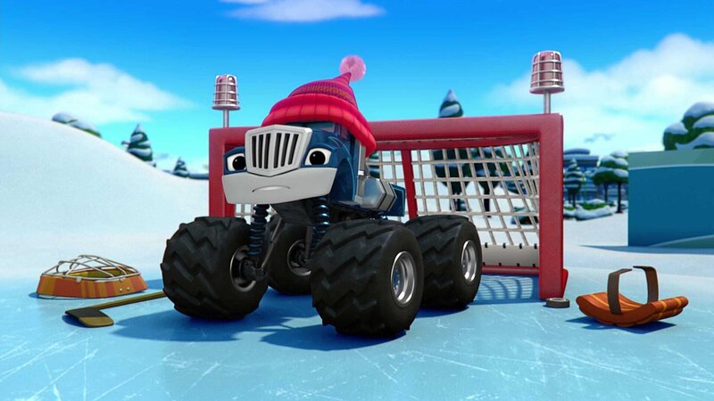 Als Crusher und Pickie in einem hohen, wackeligen Turm feststecken, verwandeln sich Blaze, Stripes und Starla in eindrucksvolle Baustellenfahrzeuge, um sie wieder nach unten zu bringen.
