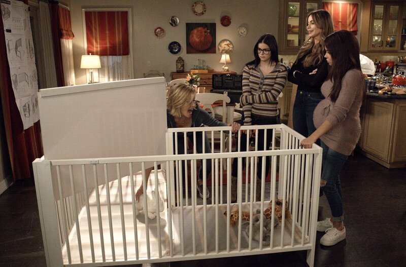 L-R: Claire Dunphy (Julie Bowen), Alex Dunphy (Ariel Winter), Gloria Delgado-Pritchett (Sofía Vergara) und Haley Dunphy (Sarah Hyland)