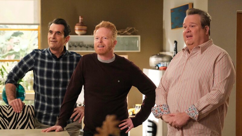 L-R: Janice (Amy Pietz), Luke Dunphy (Nolan Gould), Jay Pritchett (Ed O'Neill)