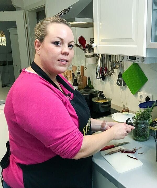 Miriams Menü: Vorspeise: Gebeizter Saibling, Parmesan-Mousse und Gin-Gurken. Hauptspeise: Hirschfilet mit Kräuterkruste und Haselnuss-Buabespitzle (Schnupfnudeln). Nachspeise: Tannenhonigparfait, Walnusscrunch und Baumkuchen.