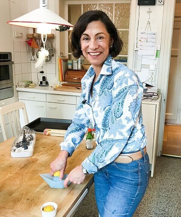 Nachspeise: Honig-Walnuss-Halbgefrorenes mit karamellisierten Walnüssen und Apfelzweierlei.