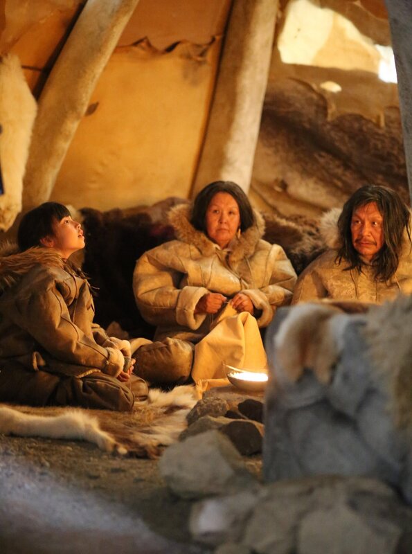 Im Winter tragen die Inuit Mäntel aus Rentierfell. Das Fell ist auf der Innenseite und liegt direkt auf der Haut. Wenn sie lange im Freien sind, tragen sie darüber noch einen Mantel mit Robbenfell auf der Außenseite.