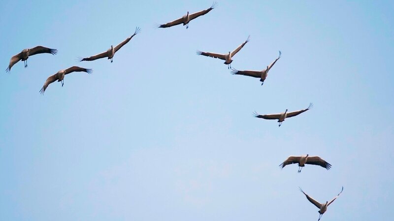 Wohin ziehen Kraniche? Und woher kommen sie? Im Frühjahr beobachten wir, wie die Kranichschwärme am Himmel vorüberziehen. Mit einem Tier an der Spitze fliegen sie in V-Form Richtung Norden, wo es langsam auch wärmer wird. Das Maus-Team folgt den Kranichen nach Norddeutschland. Dort legen die Tiere ihre Eier und brüten sie aus. Auch der Kranichjunge Grusini schlüpft dort. Kranichschützer markieren den jungen Vogel mit Ringen an seinen langen Beinen und versehen ihn mit einem Peilsender. Nun können sie seine Flugwege am Computer beobachten. Nach ersten kürzeren Flügen mit seinen Eltern geht es auch für Grusini auf lange Reisen. Über Südfrankreich und die Pyrenäen nach Spanien und wieder zurück: Immer der Sonne hinterher.