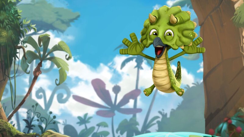 Ayati hat ihr Gleichgewicht verloren und ist gestürzt. Jetzt braucht die Dino-Dame dringend Hilfe von den vier kleinen Dinos.