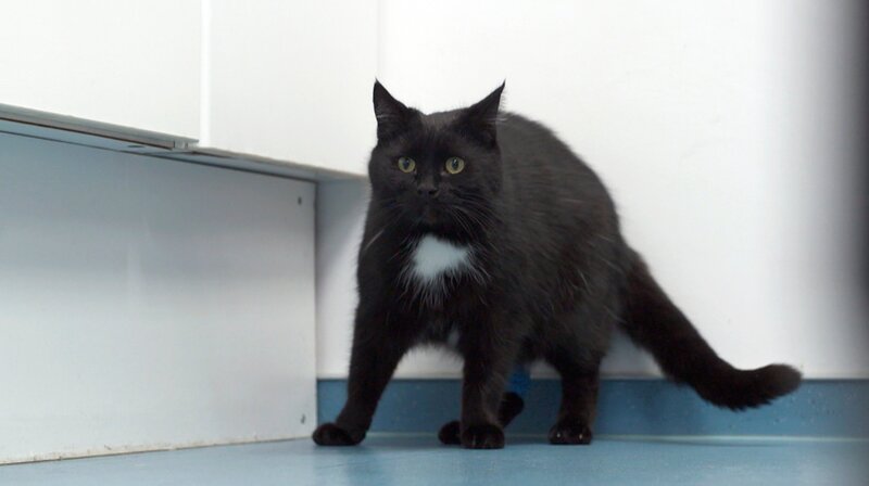 Katze Holly nimmt während der Behandlung durch Dr. Yasmin Diepenbruck Reißaus.
