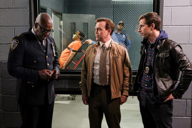 (v.l.n.r.) Caleb John Gosche (Tim Meadows); Jake Peralta (Andy Samberg); Charles Boyle (Joe Lo Truglio)
