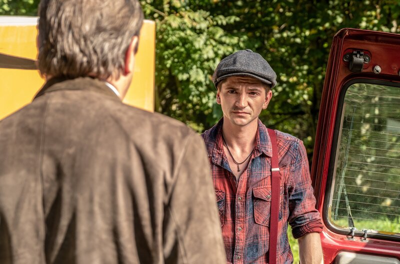 • Der Berufsfischer Michael Kroh wurde tot aus dem Königssee gefischt. Kommissar Benedikt Beissl (Andreas Giebel, l.) verdächtigt den umtriebigen Anderl Sollmaier (Benedikt Hösl, r.) und fragt ihn nach Sina.