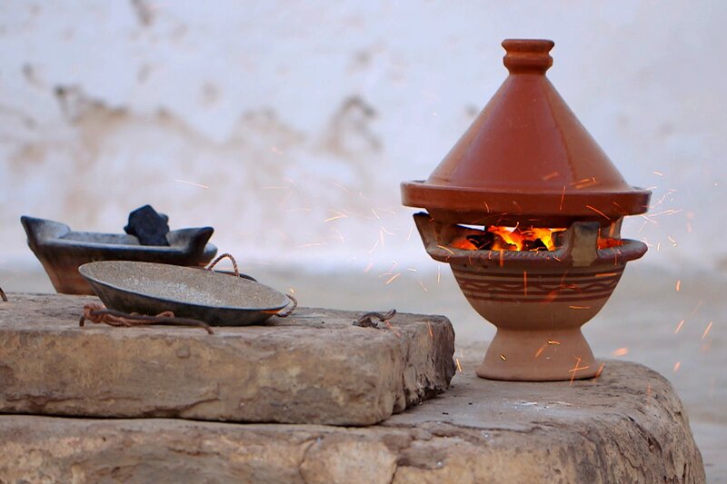 Karge Landschaften und Arganbäume prägen den Südwesten von Marokko. Bei andauernder Trockenheit können die dornigen Bäume ihr Wachstum mehrere Jahre einstellen. Aus den Samen ihrer Früchte wird das wertvolle Arganöl gepresst. Typisch marokkanische Gerichte werden in der Region mit dem Öl zubereitet: Tajine mit Ziegenfleisch, Leberspieße, Couscous und Auberginensalat.