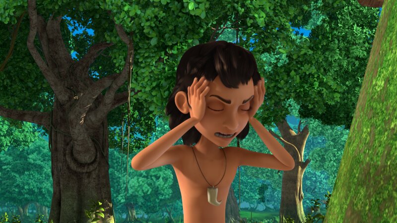 Der fiese Wolf Phaona verspricht der Äffin Mascha schöne Pfauenfedern, zum Tausch gegen ein Stück des verrückt machenden Honigs. Damit füttert er Mogli, der daraufhin größenwahnsinnig wird. Als der Menschenjunge Baghira, Balu und seine Wolfsgeschwister beleidigt, rät Phaona den Wolfseltern, Mogli aus dem Dschungel zu verbannen. Doch Mogli gerät in eine Falle von Shir Khan. Balu muss sich beeilen, die Pflanze, die die Wirkung des Honigs aufhebt, zu finden.