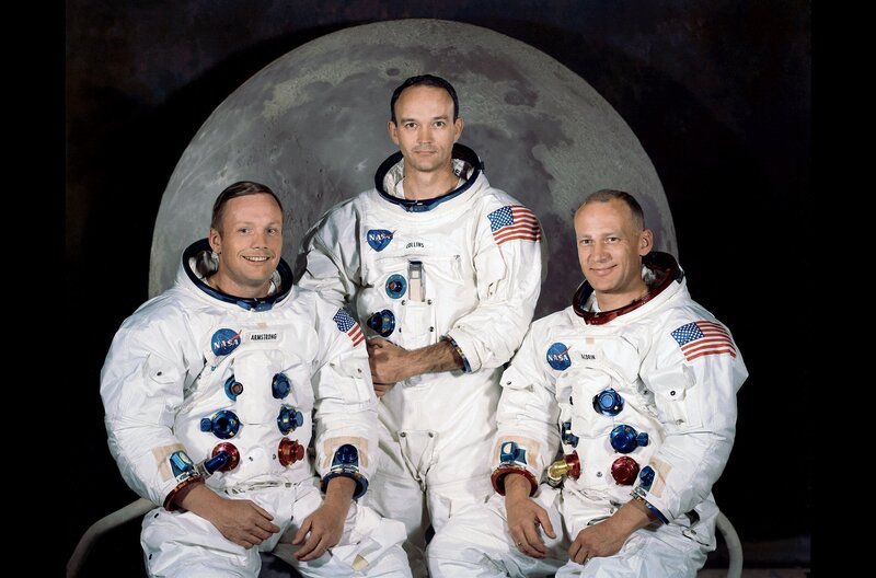 Im Januar 1969 stellte die Nasa die Astronauten vor, die mit "Apollo 11" zum Mond fliegen sollten: Buzz Aldrin (re.) und Neil Armstrong (li.) würden, unterstützt von Mike Collins (Mi.) im Kommandomodul, als erste Menschen den Erdtrabanten betreten.