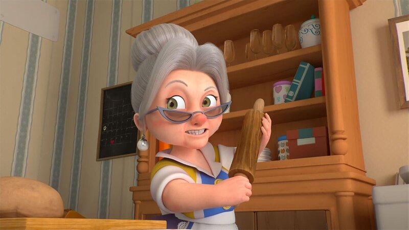 Oma Pina rutscht bei einer Oma-Karate-Übung versehentlich das Nudelholz aus der Hand. Es landet auf der Straße, wird von einen Auto überrollt und bricht entzwei. Wie soll sie ohne ein Nudelholz den Teig für ihre berühmten Nudeln ausrollen?