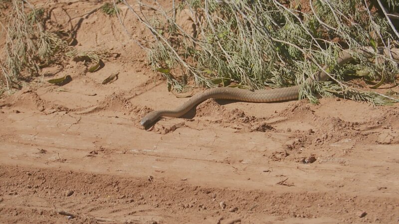 • Eine Schlange krabbelt auf dem Boden.