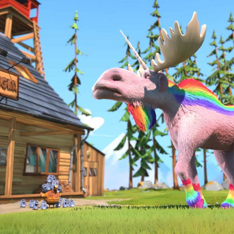 Ein Einhorn-Regenbogen-Elch fällt Grizzy durch sein Fernglas auf, dieses will er fangen, um seiner Geliebten eine Freude zu machen. Er tappt in eine Falle der Lemminge, die das Einzelstück ebenfalls für sich gewinnen wollen. Wie in einem Mario Kart Parcours verfolgt Grizzy die Lemminge auf dem Einhorn-Elch.