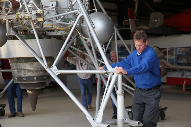 Leland Melvin im Lunar Lander Research Vehicle im Armstrong Flight Research Center der NASA im Gespräch mit Gene Matranga und Chad Jenkins.