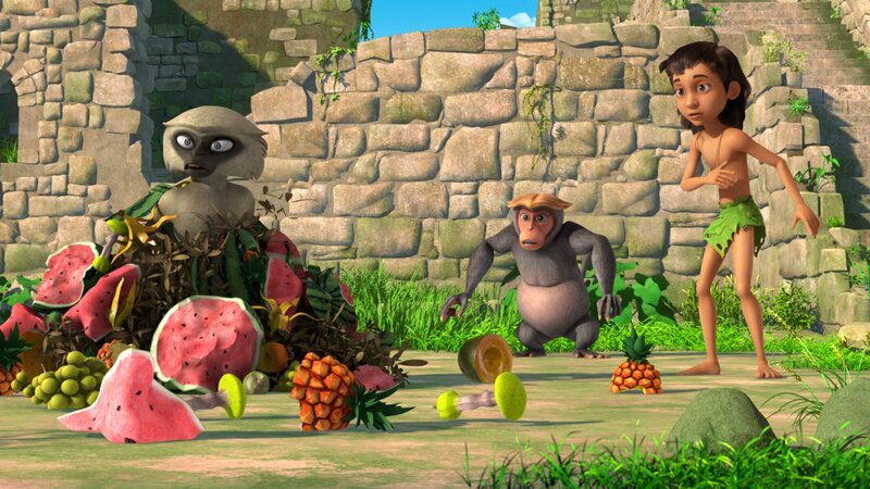 Kaphal, ein Languren-Affe, sucht im Dschungel nach einem Winterquartier für sich und seine Sippe. Mogli und seine Freunde wollen ihm behilflich sein, doch das ist gar nicht so einfach. Denn der Langur ist ziemlich überheblich und wählerisch. Mascha und Kaphal lassen sich schließlich auf einen Handel ein: Kaphal und seine Sippe dürfen mit vielen köstlichen Himalaja-Birnen im Gepäck einziehen, und Mascha und ihr Volk machen dafür den Tempel sauber. Kaphal ist jedoch nicht zufrieden mit dem Resultat und Mascha ist empört. Baghira und Balu kapitulieren und verziehen sich. Mogli will noch nicht aufgeben und bleibt. Shir Khan belauscht, wie sich Baghira und Balu über Mogli und den Languren unterhalten und wittert seine Chance, den beiden aufzulauern. Er macht sich auf zum Affentempel, wo Mogli noch immer versucht, zwischen Kaphal und Mascha zu vermitteln.