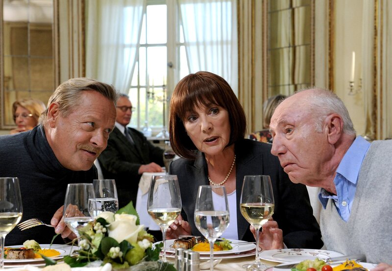 • Die reichen Rentner Franz von Hornung (Fritz von Friedl, li.), Sieglinde (Heidelinde Weis) und Albert Zwicknagel (Horst Sachtleben) planen einen gemeinsamen Coup.