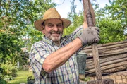 • Hobbygärtner Hans Breisacher in seinem Garten.