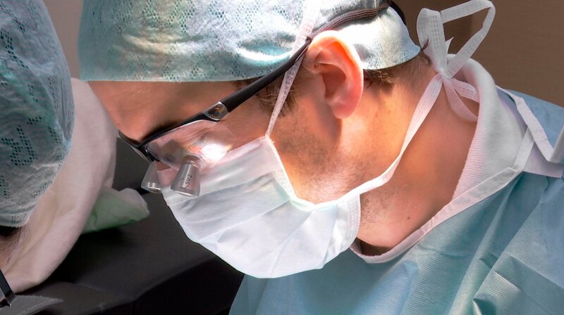 Der Handchirurg Dr. Albrecht Heine-Geldern operiert in der BGU Frankfurt einen amputierten Finger.