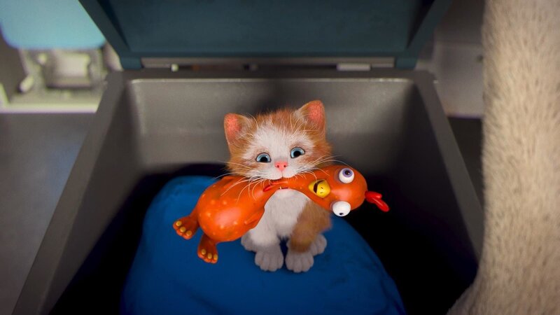 • Fluffy verfolgt Mike mit Chickie im Gepäck.