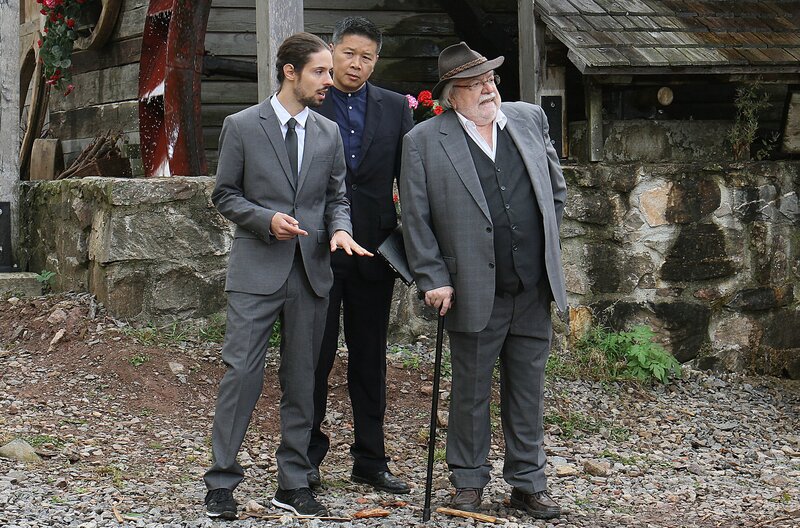 Irgendetwas scheint mit der Mühlengeschichte so ganz und gar nicht zu stimmen... Albert (Alessio Hirschkorn, li.) und Hermann (Wolfgang Hepp, re.) müssen Herrn Zemin (Benito Sambo, Mi.) bald wieder loswerden.