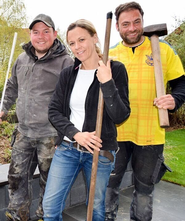 Der "Garten-Guru" Ralf Dammasch und seine Helfer Claus und Henrik gestalten in Rheinland-Pfalz eine Gartenoase für eine Großfamilie. Die Kinderecke soll ein besonderer Höhepunkt werden.
