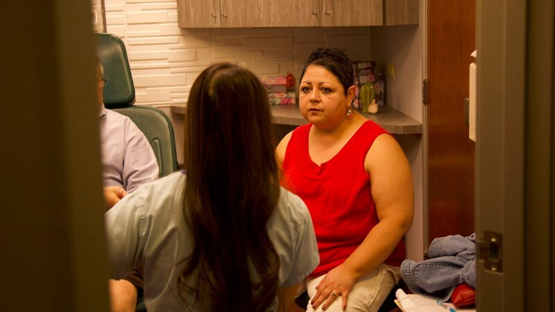 • Nelda, Jesse's sister, listens to Dr. Sandra Lee as she explains what condition she has in the exam room.