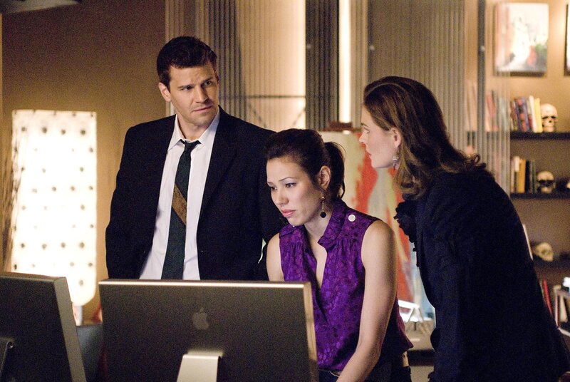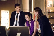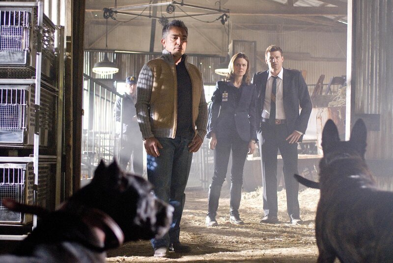 BONES: "The Dog Whisperer" Cesar Millan (L) steps in to help Brennan (Emily Deschanel, C) and Booth (David Boreanaz, R) when they discover a dog-fighting ring may be connected to the death of a veterinarian in the BONES episode "The Finger in the Nest" airing Wednesday, Sept. 17 (8:00-9:00 PM ET/PT) on FOX.