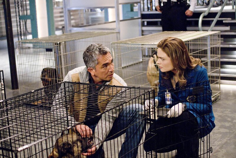 BONES: "The Dog Whisperer" Cesar Millan (L) steps in to help Brennan (Emily Deschanel, R) and Booth when they discover a dog- fighting ring may be connected to the death of a veterinarian in the BONES episode "The Finger in the Nest" airing Wednesday, Sept. 17 (8:00-9:00 PM ET/PT) on FOX.