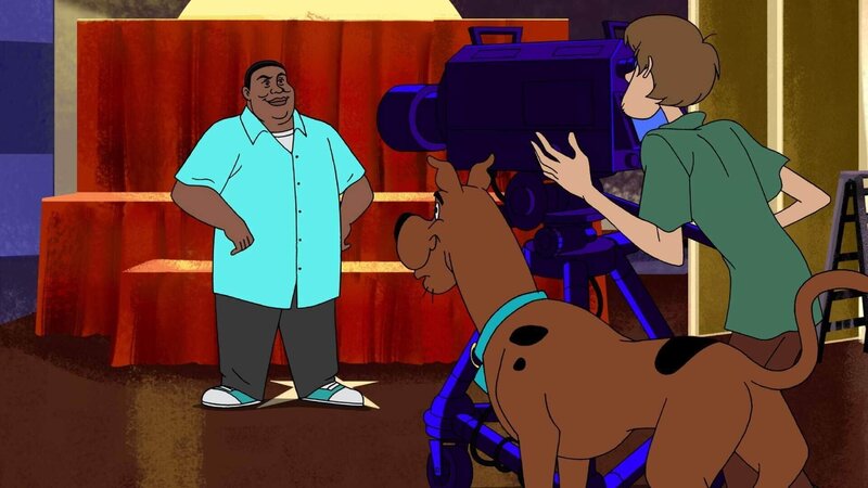 Shaggy (re.) und Scooby-Doo (mi.) helfen Kenan Thompson (li.) bei der Vorbereitung der Show, indem sie ihm durch die Kamera zusehen wie er ein paar Dinge ausprobiert. Der Spendenmarathon muss erfolgreich sein, um den Sender zu retten.